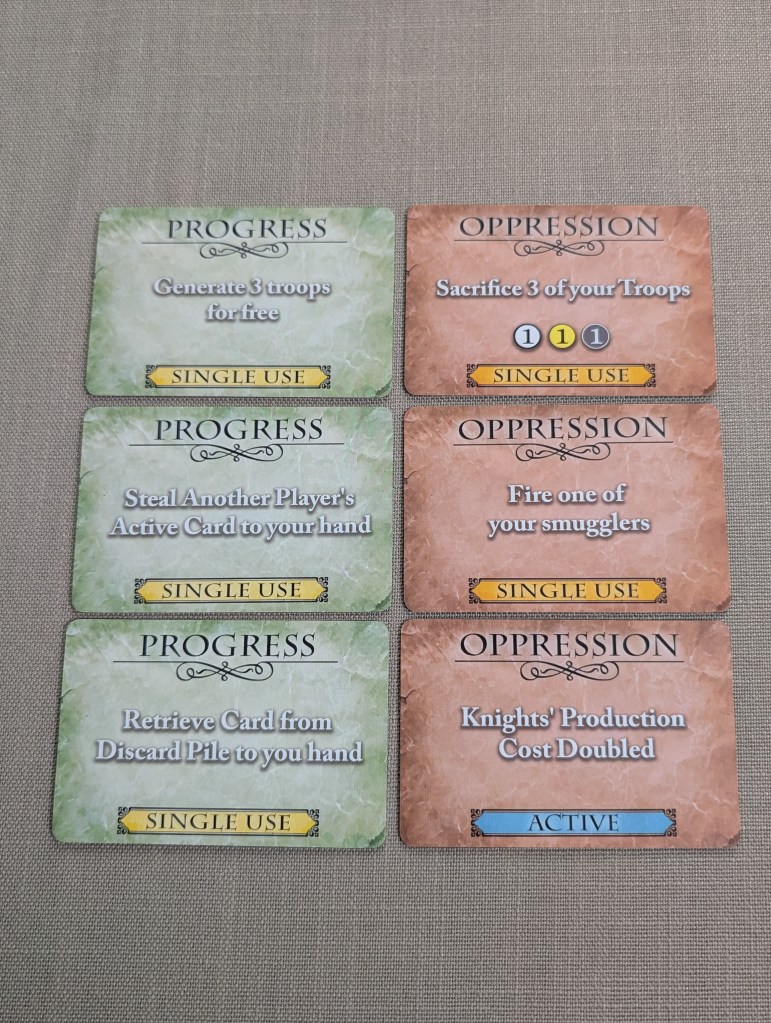 - “Oppression” tactics cards, as well as a tribute required to remove some of them, add a lot of laughs into the game play