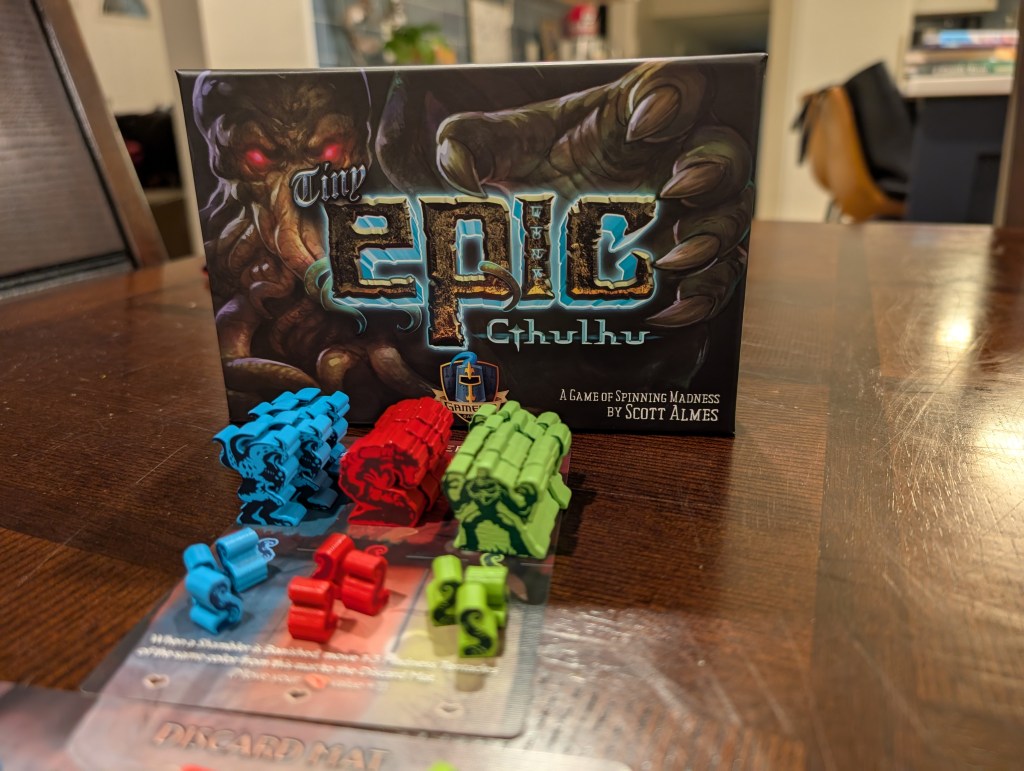 Upfront Disclaimer: Gamelyn Games generously provided me with a copy of “Tiny Epic Cthulhu” for purposes of testing it out and writing a review. No compensation was provided and I am free to write whatever I want about the game. All opinions contained within are my own unbiased thoughts.